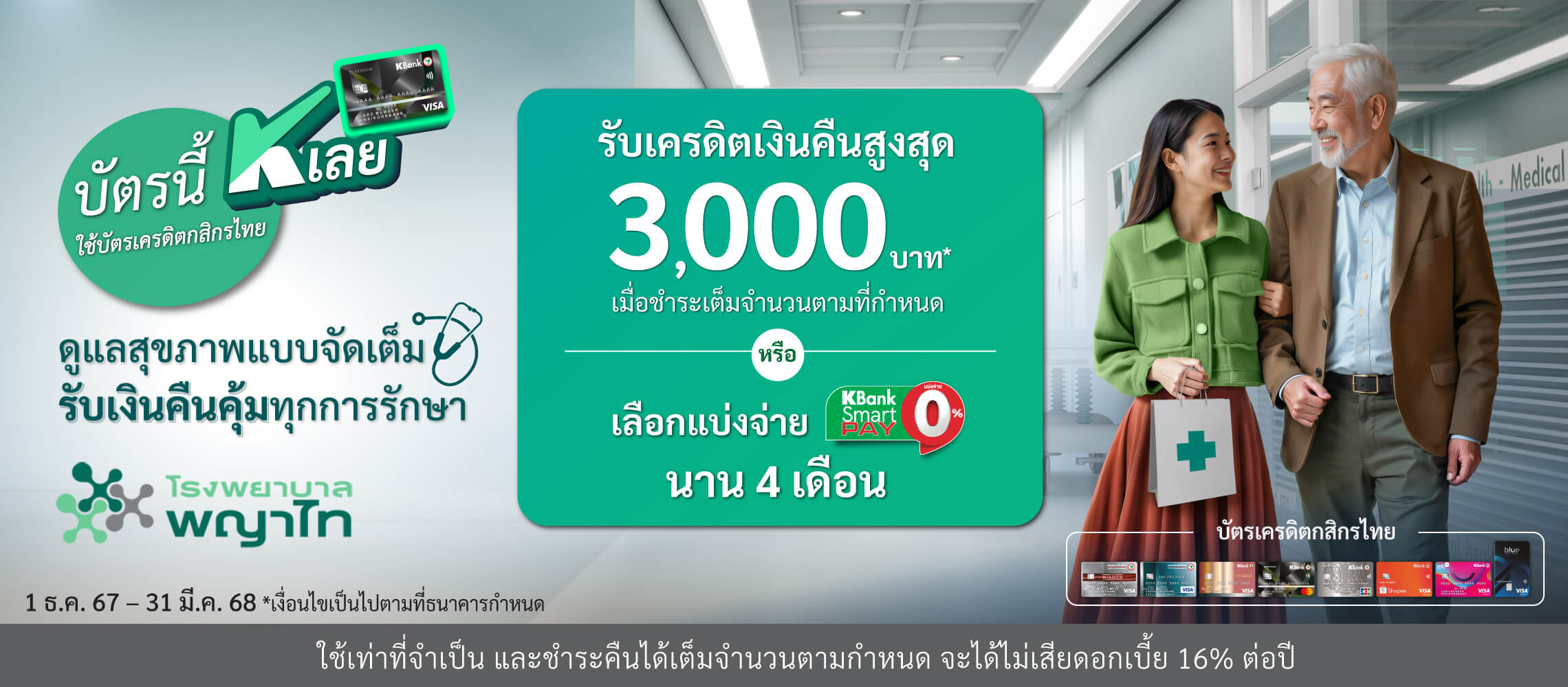 รับส่วนลด และเครดิตเงินคืน ตามเงื่อนไข ที่ โรงพยาบาลพญาไท
