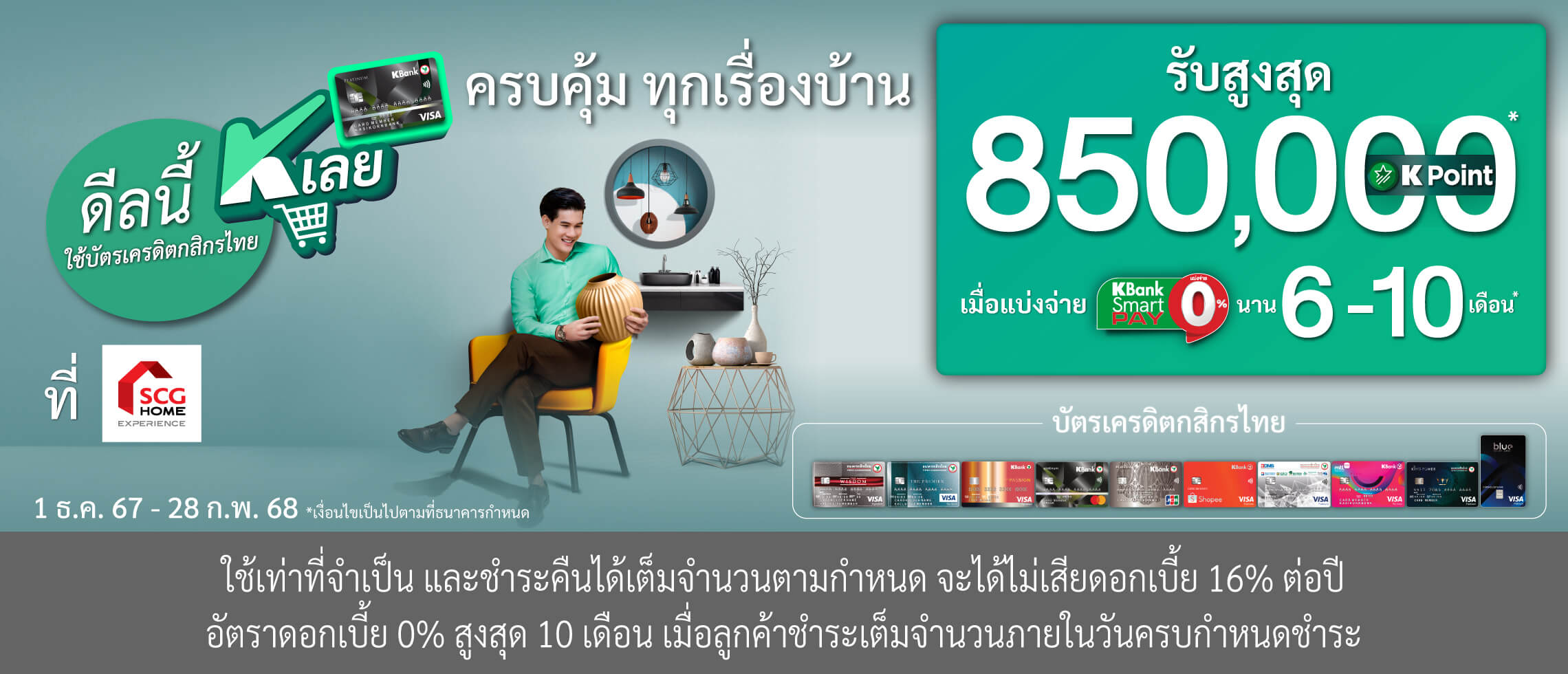 ช้อปของสร้างบ้าน หรือแต่งบ้าน ที่ SCG HOME Experience รับคะแนนสะสมพิเศษสูงสุด 850,000 K Point เมื่อแบ่งจ่าย 0%