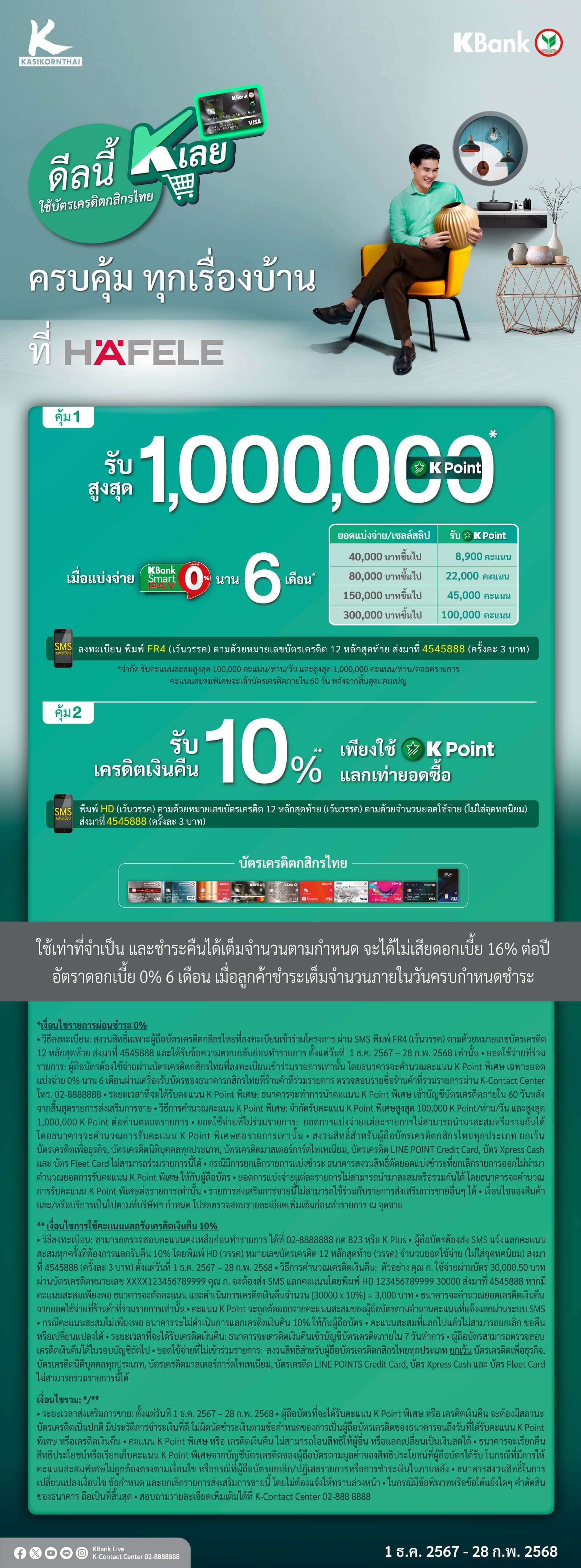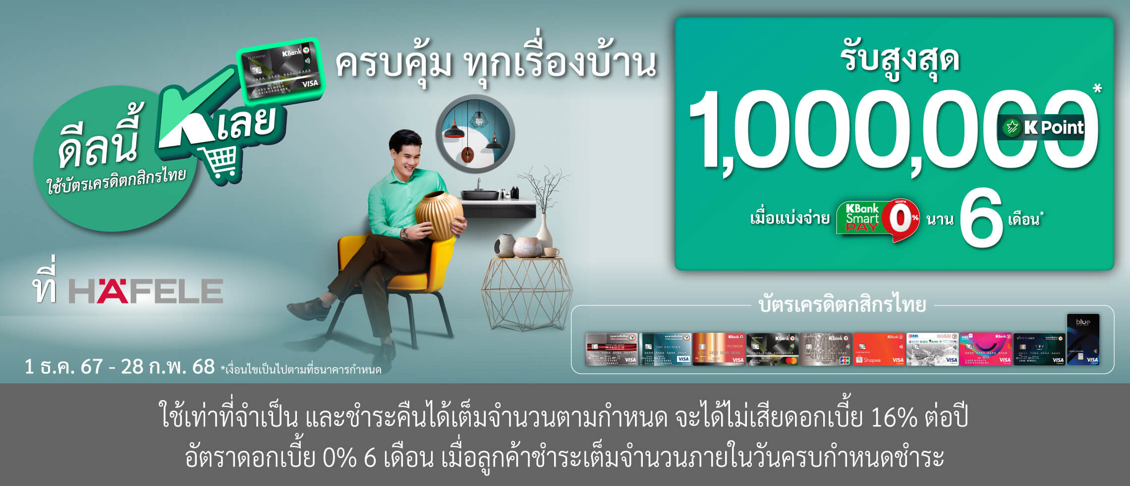 โปรโมชั่น Hafele รับคะแนนสะสมพิเศษสูงสุด 1,000,000 คะแนน เมื่อแบ่งจ่าย 0%
