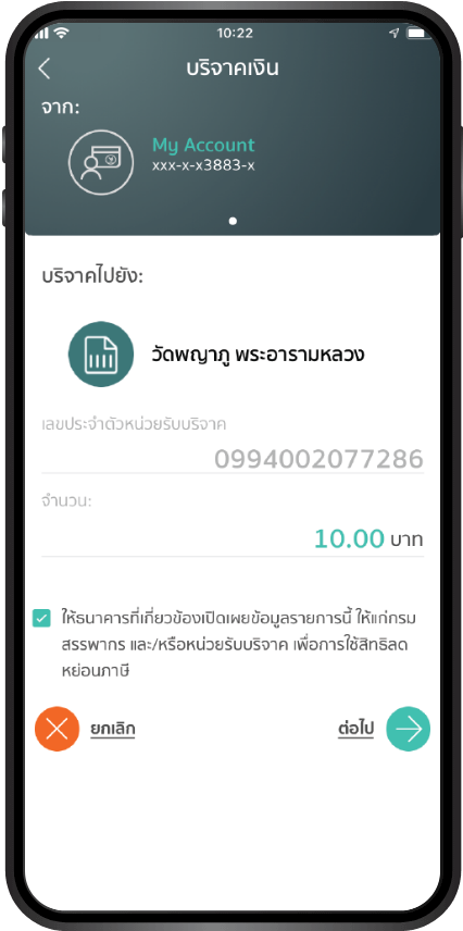 สามารถตรวจสอบข้อมูลการบริจาคได้ที่ ระบบบริจาคอิเล็กทรอนิกส์ (e-Donation)
