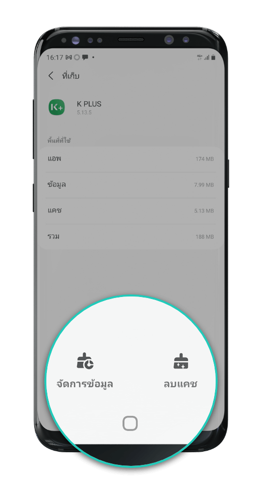 ทำการเคลียร์แคช (Clear Cache) หรือลบข้อมูลขยะในเครื่องที่ไม่จำเป็นออกบ้าง เพื่อให้มีพื้นที่เก็บข้อมูลเพียงพอสำหรับการลงแอปพลิเคชัน และยังทำให้การเข้าใช้งาน K PLUS ดีและเร็วขึ้นด้วย
