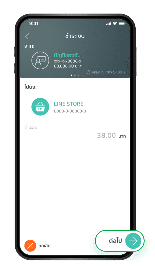 เลือก “ต่อไป” เพื่อไปหน้าตรวจสอบรายการชำระเงิน