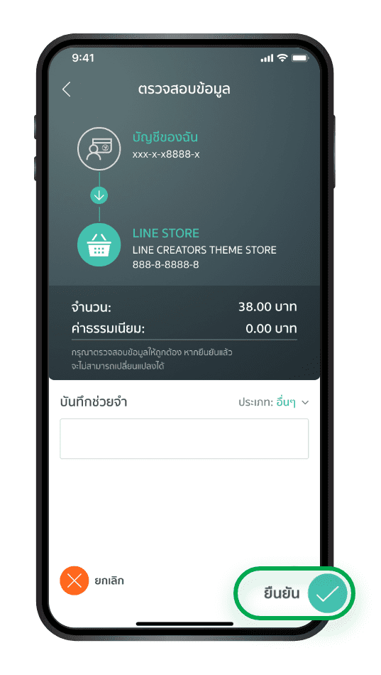 ตรวจสอบรายการ ชำระเงิน และเลือก “ยืนยัน”
