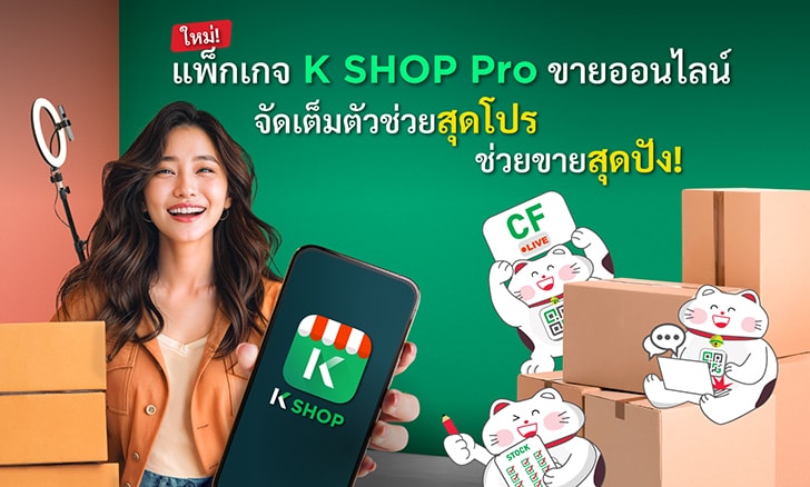 - แพ็กเกจ K SHOP Pro ทดลองใช้ฟรี 30 วัน มูลค่า 299 บาท และรับเงินคืนเข้าบัญชี (Cash Back) มูลค่า 598 บาท*