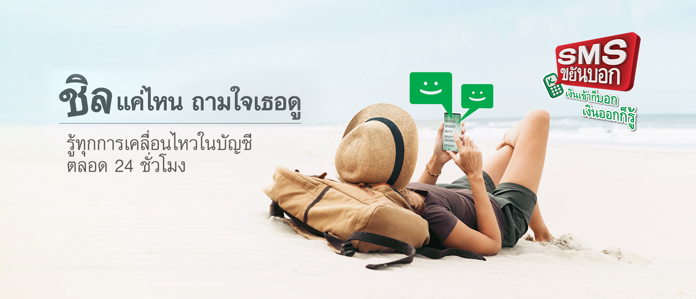 สมัครบริการ SMS ขยันบอก ง่ายๆ ทุกช่องทาง (ค่าบริการรายปี 199 บาท/บัญชี)