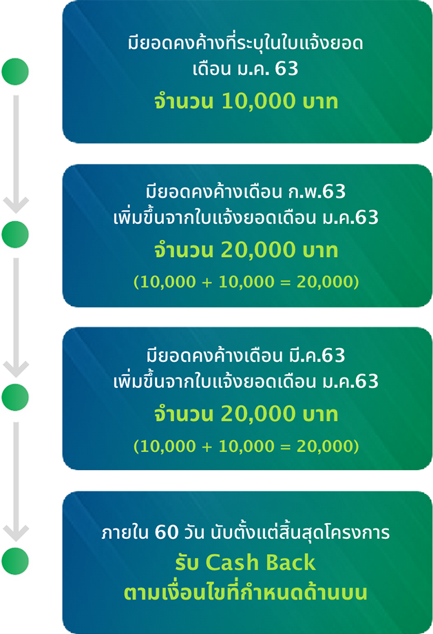 จำนวนยอดคงค้าง ที่เพิ่มขึ้นจากใบแจ้งยอด สินเชื่อเดือน ม.ค. 63 | รับ Cash Back |