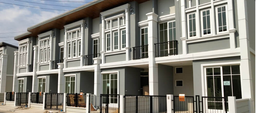 ทาวน์เฮาส์ในย่านแบริ่งมีลักษณะคล้ายๆ กับหมู่บ้านทั่วไป คือ ประมาณไม่เกิน 3 ชั้น (ส่วนใหญ่จะ 2 ชั้น) ราคาเริ่มต้นที่ประมาณ 1.9 – 3.9 ล้านบาท