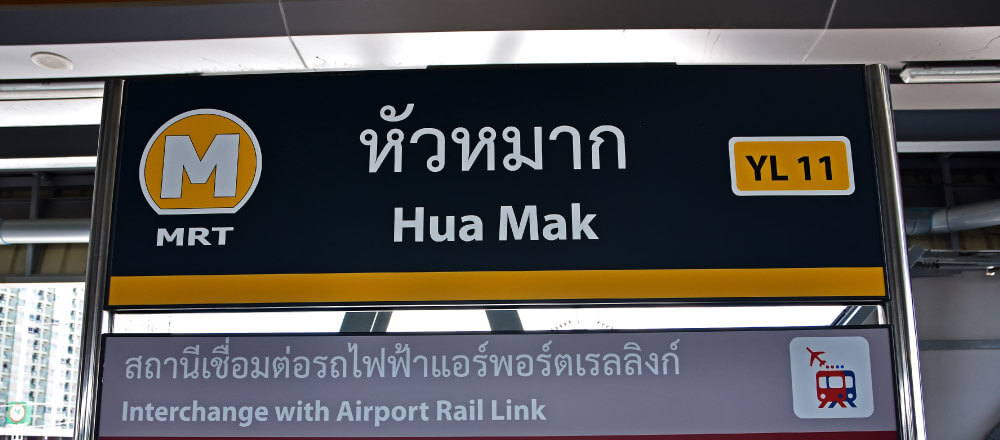 - รถไฟฟ้าแอร์พอร์ต เรลลิงก์ (Airport Rail Link) เชื่อมต่อที่สถานีหัวหมาก สามารถใช้เดินทางไปยังสนามบินสุวรรณภูมิ และเปลี่ยนมาใช้บริการรถไฟฟ้าสายสีเขียวได้