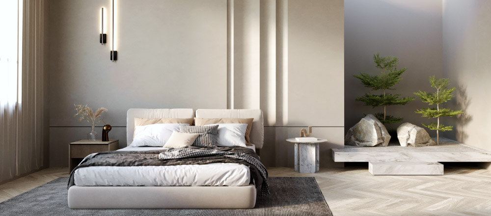 ห้องนอนเป็นพื้นที่สำหรับการพักผ่อน การพักผ่อนที่ดีจะส่งเสริมให้สุขภาพร่างกายดีไปด้วย การเลือกสีภายในห้องนอนจึงควรเป็นโทนสีอ่อน ลวดลายสบายตา ไม่ฉูดฉาด เพื่อเป็นการส่งเสริมให้การนอนหลับมีประสิทธิภาพมากขึ้น