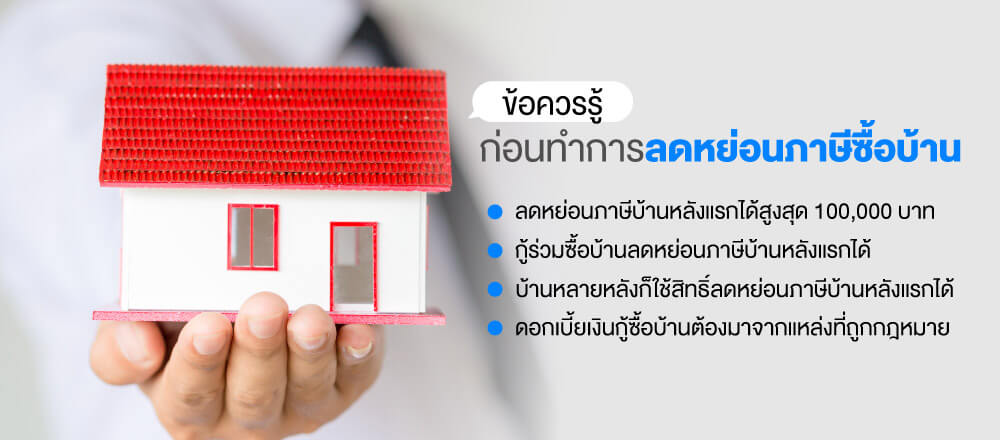 แต่จำนวนลดหย่อนภาษีบ้านหลังแรกสูงสุดจะอยู่ที่ 100,000 บาท ดังนั้น ทั้งผู้กู้ และผู้กู้ร่วมจะมีสิทธิ์ลดหย่อนภาษีคนละ