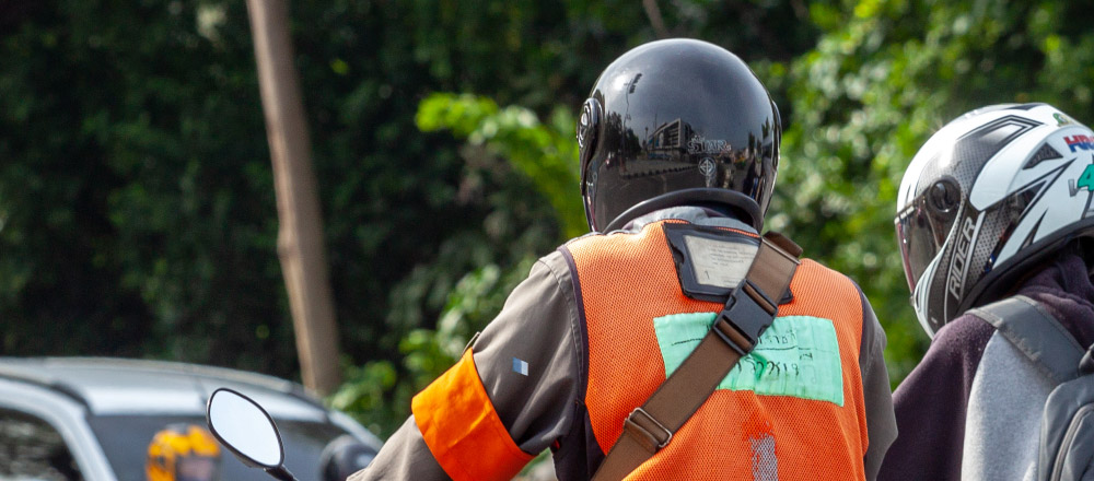 การเดินทางด้วยวินมอเตอร์ไซค์รับข้างในย่านวงเวียนพระราม 5