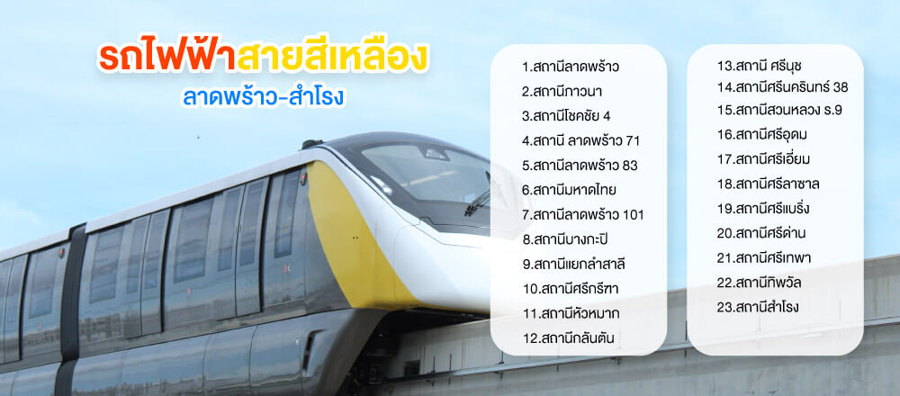 การคาดการณ์ทำเลที่มีแนวโน้มจะเป็นทำเลทองในอนาคต ก็คื อรถไฟฟ้าสายสีเหลือง ลาดพร้าว - สำโรง หนึ่งในทำเลที่มีศักยภาพสูงมาก เพราะผ่านพื้นที่สำคัญต่างๆ มากมาย โดยมีทั้งหมด 23 สถานี เริ่มต้นที่สถานีรัชดา และไปสิ้นสุดที่สถานีสำโรง ระยะทาง 30.4 กิโลเมตร