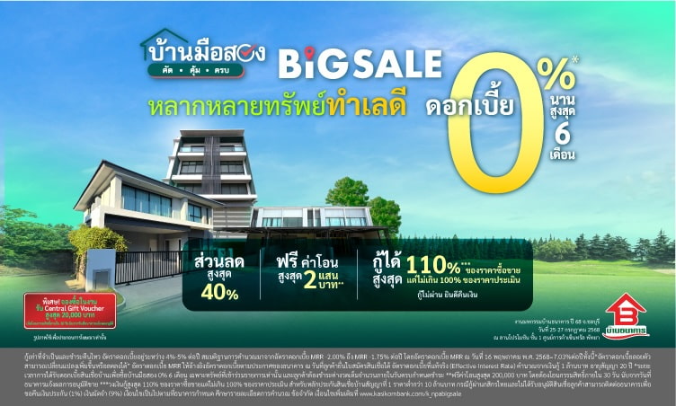 - อัตราดอกเบี้ย 0% นาน 3 ปี (เฉพาะทรัยพ์ที่ร่วมรายการ) ดูรายละเอียดเพิ่มเติมรายการทรัพย์ที่ร่วมรายการได้ที่เว็บไซต์