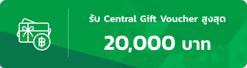 - สำหรับลูกค้าที่เสนอซื้อและชำระเงินประกันภายในงานและโอนกรรมสิทธิ์ให้แล้วเสร็จภายใน 30 วัน นับจากวันที่ระบุในหนังสือแจ้งผลพิจารณา รับบัตรกำนัลมูลค่าสูงสุด 20,000 บาท โดยมีรายละเอียด ดังนี้