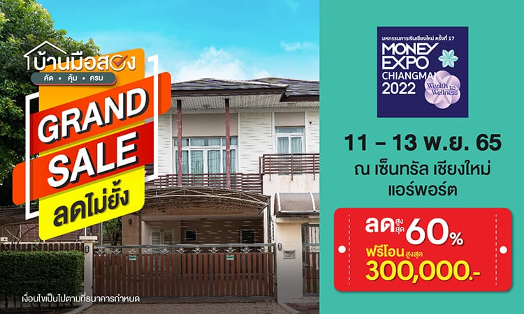 - เงื่อนไขพิเศษ เฉพาะลูกค้าที่เสนอซื้อทรัพย์สินรอการขายในงาน Money Expo Chiangmai 2022 ตั้งแต่วันที่ 11 - 13 พฤศจิกายน 2565 เท่านั้น โดยผู้ซื้อต้องระบุโค้ด “MECNX022” ในช่อง โค้ดโปรโมชัน ที่หน้าการเสนอซื้อ