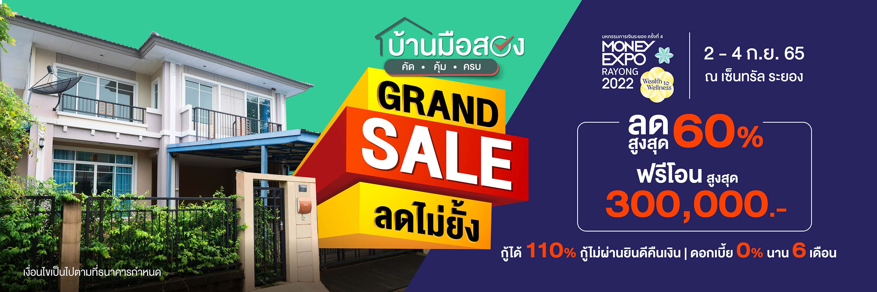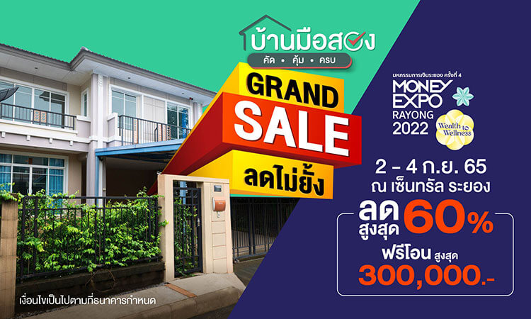 - เงื่อนไขพิเศษ เฉพาะลูกค้าที่เสนอซื้อทรัพย์สินรอการขายในงาน Money Expo Rayong 2022 ตั้งแต่วันที่ 2 - 4 กันยายน 2565 เท่านั้น โดยผู้ซื้อต้องระบุโค้ด “MERAY022” ในช่อง โค้ดโปรโมชัน ที่หน้าการเสนอซื้อ