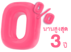 - ระยะเวลาการได้รับดอกเบี้ย 0% 3 ปี ขึ้นอยู่กับทรัพย์ที่เข้าร่วมรายการ และอัตราดอกเบี้ย 0% เมื่อลูกค้าชำระค่างวดเต็มจำนวนภายในวันครบกำหนดชำระ