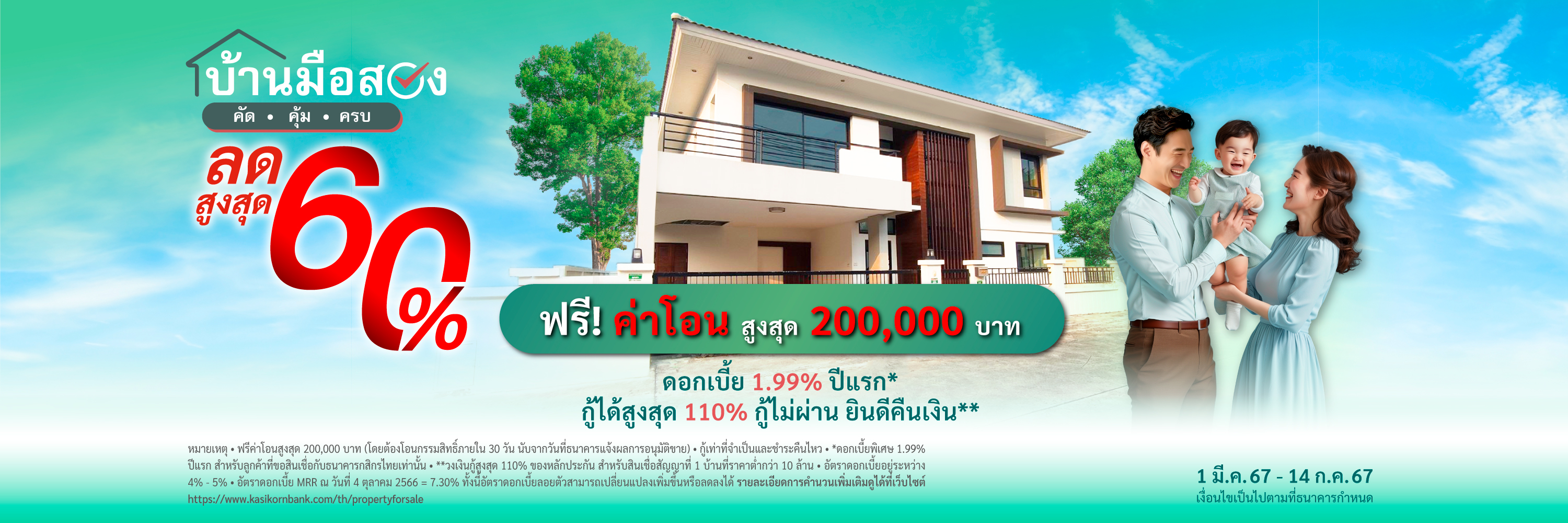 (โดยต้องโอนกรรมสิทธิ์ภายใน 30 วัน นับจากวันที่ธนาคารแจ้งผลการอนุมัติขาย)